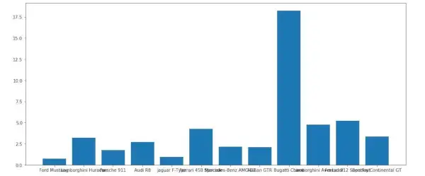 import> pandas as pd> from> matplotlib> import> pyplot as plt> # Read CSV into pandas> data> => pd.read_csv(r> 'cars.csv'> )> data.head()> df> => pd.DataFrame(data)> name> => df[> 'car'> ].head(> 12> )> price> => df[> 'price'> ].head(> 12> )> # Figure Size> fig> => plt.figure(figsize> => (> 10> ,> 7> ))> # Horizontal Bar Plot> plt.bar(name[> 0> :> 10> ], price[> 0> :> 10> ])> # Show Plot> plt.show()> |