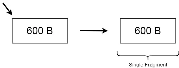 - Ak systém posiela pakety väčšie ako veľkosť MTU, teda v tomto prípade veľkosť paketu> 750 B, potom bude systémový paket fragmentovaný na menšie pakety tak, aby ich veľkosť nepresiahla najväčšiu veľkosť paketu. Proces rozdelenia veľkého dátového paketu na menšie časti údajov tak, že žiadny z týchto častí nepresiahne maximálnu veľkosť rámca, sa nazýva fragmentácia. Tie sa neskôr znovu zmontujú v cieľovom mieste konečného klienta.